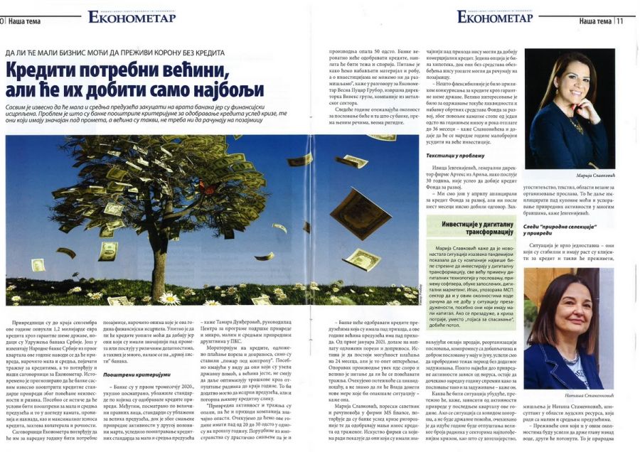 Imali smo pomoć države privredi koja se sastojala od direktnih davanja i fiskalnih pogodnosti. Direktna davanja odnosila su se na uplatu bespovratnih novčanih sredstava privredi za preduzetnike, za pravna lica koja su razvrstana kao mikro, mala i srednja koji su mogli isključivo da koriste bespovratna novčana sredstva za isplate zarada i naknada zarada zaposlenima.